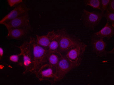 Immunofluorescence staining of methanol-fixed MCF cells using Estrogen Receptor-a(Phospho-Ser118) Antibody.
