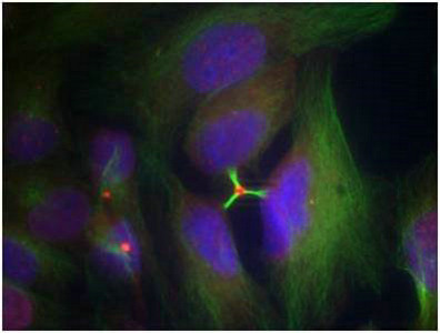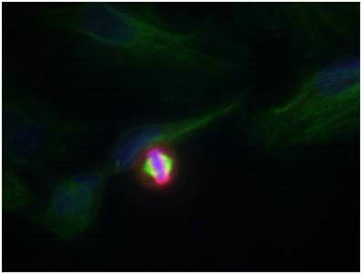 Immunofluorescence staining of methanol-fixed Hela cells using Histone H3.1 (Phospho-Ser10) Antibody.