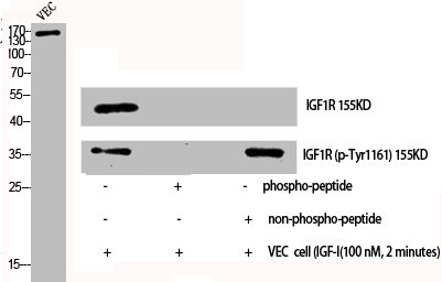 免疫原:Synthesized peptide derived from Human IGF-IR around the phosphorylation site of Y1161.