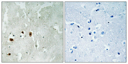 純化方式:Antibodies were produced by immunizing rabbits with synthetic phosphopeptide and KLH conjugates. Antibodies were purified by affinity-chromatography using epitope-specific phosphopeptide. Non-phospho specific antibodies were removed by chromatogramphy usi