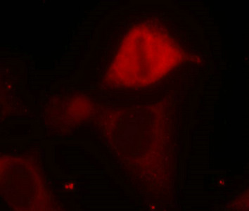 Immunofluorescence staining of methanol-fixed Hela cells using MKK3(Phospho-Ser189) Antibody.