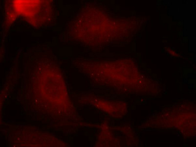 Immunofluorescence staining of methanol-fixed Hela cells using Tau(Phospho-Ser404) Antibody.