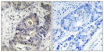純化方式:Antibodies were produced by immunizing rabbits with synthetic phosphopeptide and KLH conjugates. Antibodies were purified by affinity-chromatography using epitope-specific phosphopeptide. Non-phospho specific antibodies were removed by chromatogramphy usi
