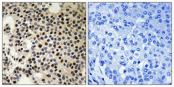 純化方式:Antibodies were produced by immunizing rabbits with synthetic phosphopeptide and KLH conjugates. Antibodies were purified by affinity-chromatography using epitope-specific phosphopeptide. Non-phospho specific antibodies were removed by chromatogramphy usi
