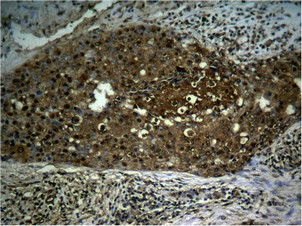Immunohistochemical analysis of paraffin- embedded human lung carcinoma tissue using NFκB-p65 (Phospho-Ser276) antibody.