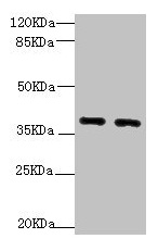 Predicted band size: 38, 37, 36 kDa