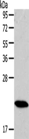 Gel: 10%SDS-PAGE, Lysate: 40 μg, Lane: Mouse heart tissue, Primary antibody: CSB-PA981899(RAB18 Antibody) at dilution 1/400, Secondary antibody: Goat anti rabbit IgG at 1/8000 dilution, Exposure time: 1 second