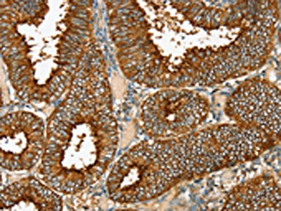 組織特異性:Expressed in ovarian epithelium (NOE) and breast tissue. Expressed in ovarian cancer; expression is increased relative to NOE cells. Expression in ovarian cancer is stage dependent, with stage III and stage IV showing higher levels than early stage cancer