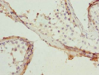 Immunohistochemistry of paraffin-embedded human testis tissue using CSB-PA019214ESR2HU at dilution of 1:100