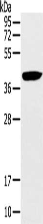 Gel: 10%SDS-PAGE, Lysate: 40 μg, Lane: Hela cells, Primary antibody: CSB-PA247431(RAD51 Antibody) at dilution 1/200, Secondary antibody: Goat anti rabbit IgG at 1/8000 dilution, Exposure time: 20 seconds