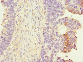 Immunohistochemistry of paraffin-embedded human ovarian cancer using CSB-PA019297ESR2HU at dilution of 1:100