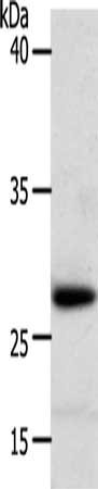 Gel: 10+15%SDS-PAGE, Lysate: 50 μg, Lane: Human liver cancer tissue, Primary antibody: CSB-PA843377(RARRES1 Antibody) at dilution 1/300, Secondary antibody: Goat anti rabbit IgG at 1/8000 dilution, Exposure time: 40 seconds