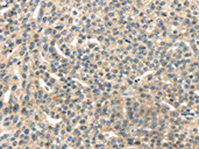 The image on the left is immunohistochemistry of paraffin-embedded Human ovarian cancer tissue using CSB-PA028193(RASA2 Antibody) at dilution 1/45, on the right is treated with synthetic peptide. (Original magnification: ×200)