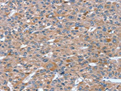 The image on the left is immunohistochemistry of paraffin-embedded Human liver cancer tissue using CSB-PA912569(RASAL1 Antibody) at dilution 1/20, on the right is treated with fusion protein. (Original magnification: ×200)