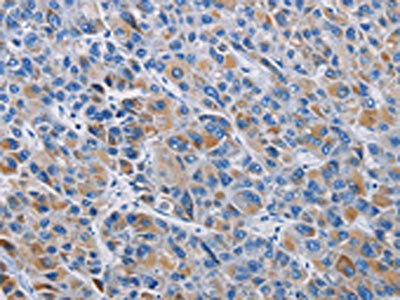 The image on the left is immunohistochemistry of paraffin-embedded Human liver cancer tissue using CSB-PA917257(RICTOR Antibody) at dilution 1/50, on the right is treated with fusion protein. (Original magnification: ×200)