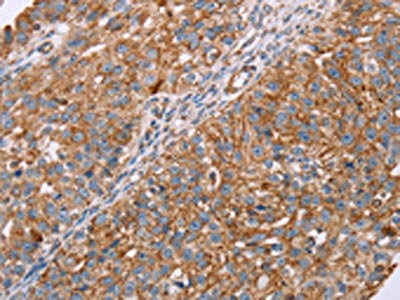The image on the left is immunohistochemistry of paraffin-embedded Human esophagus cancer tissue using CSB-PA137479(RMDN3 Antibody) at dilution 1/20, on the right is treated with fusion protein. (Original magnification: ×200)