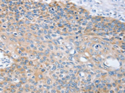 The image on the left is immunohistochemistry of paraffin-embedded Human esophagus cancer tissue using CSB-PA354431(RNF185 Antibody) at dilution 1/25, on the right is treated with fusion protein. (Original magnification: ×200)