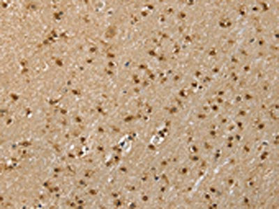 The image on the left is immunohistochemistry of paraffin-embedded Human brain tissue using CSB-PA904655(RNH1 Antibody) at dilution 1/40, on the right is treated with fusion protein. (Original magnification: ×200)