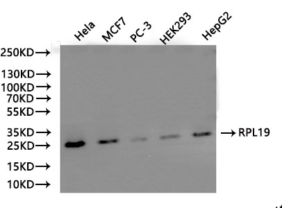 Positive WB detected in: Hela whole cell lysate(20μg), MCF7 whole cell lysate(20μg), PC-3 whole cell lysate(20μg), HEK293 whole cell lysate(20μg), HepG2 whole cell lysate(20μg)
