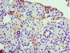 Immunohistochemistry of paraffin-embedded human pancreatic tissue using CSB-PA020225DA01HU at dilution of 1:100