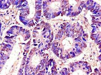 Immunohistochemistry of paraffin-embedded human colon cancer using CSB-PA897546LA01HU at dilution of 1:100