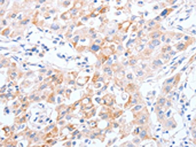 The image on the left is immunohistochemistry of paraffin-embedded Human breast cancer tissue using CSB-PA166219(SCARB1 Antibody) at dilution 1/30, on the right is treated with synthetic peptide. (Original magnification: ×200)