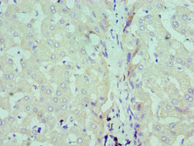 Immunohistochemistry of paraffin-embedded human liver tissue using CSB-PA020888ESR2HU at dilution of 1:100