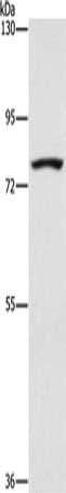 Gel: 6%SDS-PAGE, Lysate: 40 μg, Lane: K562 cells, Primary antibody: CSB-PA972496(SENP1 Antibody) at dilution 1/1500, Secondary antibody: Goat anti rabbit IgG at 1/8000 dilution, Exposure time: 5 minutes