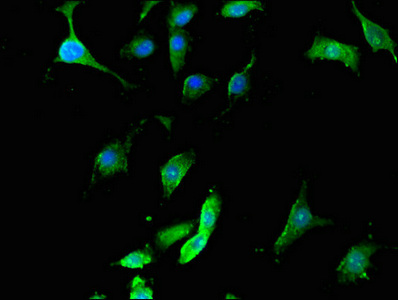 Immunofluorescent analysis of U251 cells using CSB-PA809019LA01HU at dilution of 1:100 and Alexa Fluor 488-congugated AffiniPure Goat Anti-Rabbit IgG(H+L)