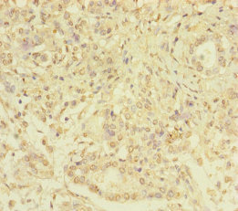 Immunohistochemistry of paraffin-embedded human pancreatic cancer using CSB-PA021074ESR1HU at dilution of 1:100