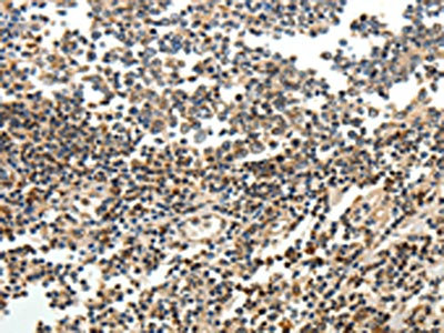 The image on the left is immunohistochemistry of paraffin-embedded Human tonsil tissue using CSB-PA269266(SERPINF1 Antibody) at dilution 1/15, on the right is treated with fusion protein. (Original magnification: ×200)