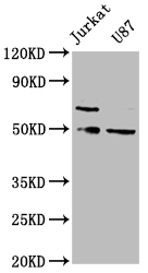 Positive WB detected in: Jurkat whole cell lysate, U87 whole cell lysate