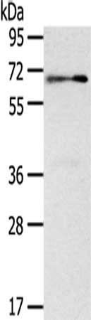 Gel: 8%SDS-PAGE,Lysate: 40 μg,,Primary antibody: CSB-PA812859(SIGLEC12 Antibody) at dilution 1/500 dilution,Secondary antibody: Goat anti rabbit IgG at 1/8000 dilution,Exposure time: 1 minute