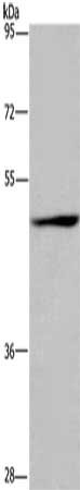 Gel: 6%SDS-PAGE, Lysate: 50 μg, Lane: Jurkat cells, Primary antibody: CSB-PA617106(SIGLEC9 Antibody) at dilution 1/350, Secondary antibody: Goat anti rabbit IgG at 1/8000 dilution, Exposure time: 30 seconds