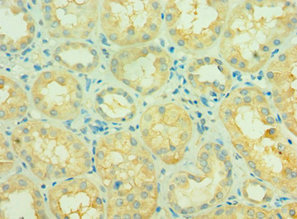 Immunohistochemistry of paraffin-embedded human kidney tissue using CSB-PA882102ESR1HU at dilution of 1:100