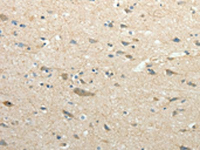 The image on the left is immunohistochemistry of paraffin-embedded Human brain tissue using CSB-PA937428(SIRT3 Antibody) at dilution 1/30, on the right is treated with fusion protein. (Original magnification: ×200)