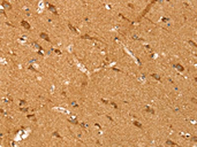The image on the left is immunohistochemistry of paraffin-embedded Human brain tissue using CSB-PA902433(SIRT4 Antibody) at dilution 1/35, on the right is treated with synthetic peptide. (Original magnification: ×200)