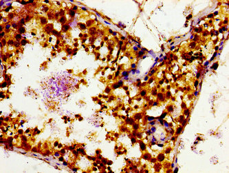 Immunohistochemistry of paraffin-embedded human testis tissue using CSB-PA757957LA01HU at dilution of 1:100
