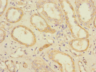 Immunohistochemistry of paraffin-embedded human kidney tissue using CSB-PA021438ESR2HU at dilution of 1:100