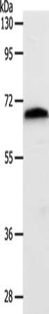 Gel: 10%SDS-PAGE, Lysate: 40 μg, Lane: Mouse liver tissue, Primary antibody: CSB-PA193383(SLC22A3 Antibody) at dilution 1/400, Secondary antibody: Goat anti rabbit IgG at 1/8000 dilution, Exposure time: 1 minute