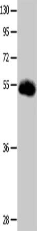 Gel: 10%SDS-PAGE, Lysate: 40 μg, Lane: Human colon cancer tissue, Primary antibody: CSB-PA780302(SLC2A3 Antibody) at dilution 1/400, Secondary antibody: Goat anti rabbit IgG at 1/8000 dilution, Exposure time: 2 minutes