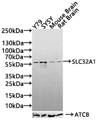 Positive WB detected in: Y79 whole cell lysate(30μg), SY5Y whole cell lysate(30μg), Mouse Brain tissue lysate(30μg),Rat Brain tissue lysate(30μg)