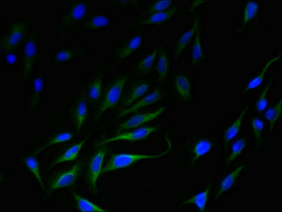 Immunofluorescent analysis of Hela cells using CSB-PA840985LA01HU at dilution of 1:100 and Alexa Fluor 488-congugated AffiniPure Goat Anti-Rabbit IgG(H+L)