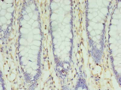 Immunohistochemistry of paraffin-embedded human colon cancer using CSB-PA840985LA01HU at dilution of 1:100