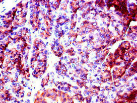 Immunohistochemistry of paraffin-embedded human pancreatic tissue using CSB-PA819478LA01HU at dilution of 1:100