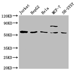 Positive WB detected in: Jurkat whole cell lysate, HepG2 whole cell lysate, Hela whole cell lysate, MCF-7 whole cell lysate, SH-SY5Y whole cell lysate
