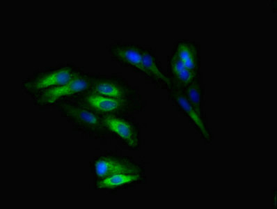 Immunofluorescent analysis of Hela cells using CSB-PA021774LA01HU at dilution of 1:100 and Alexa Fluor 488-congugated AffiniPure Goat Anti-Rabbit IgG(H+L)