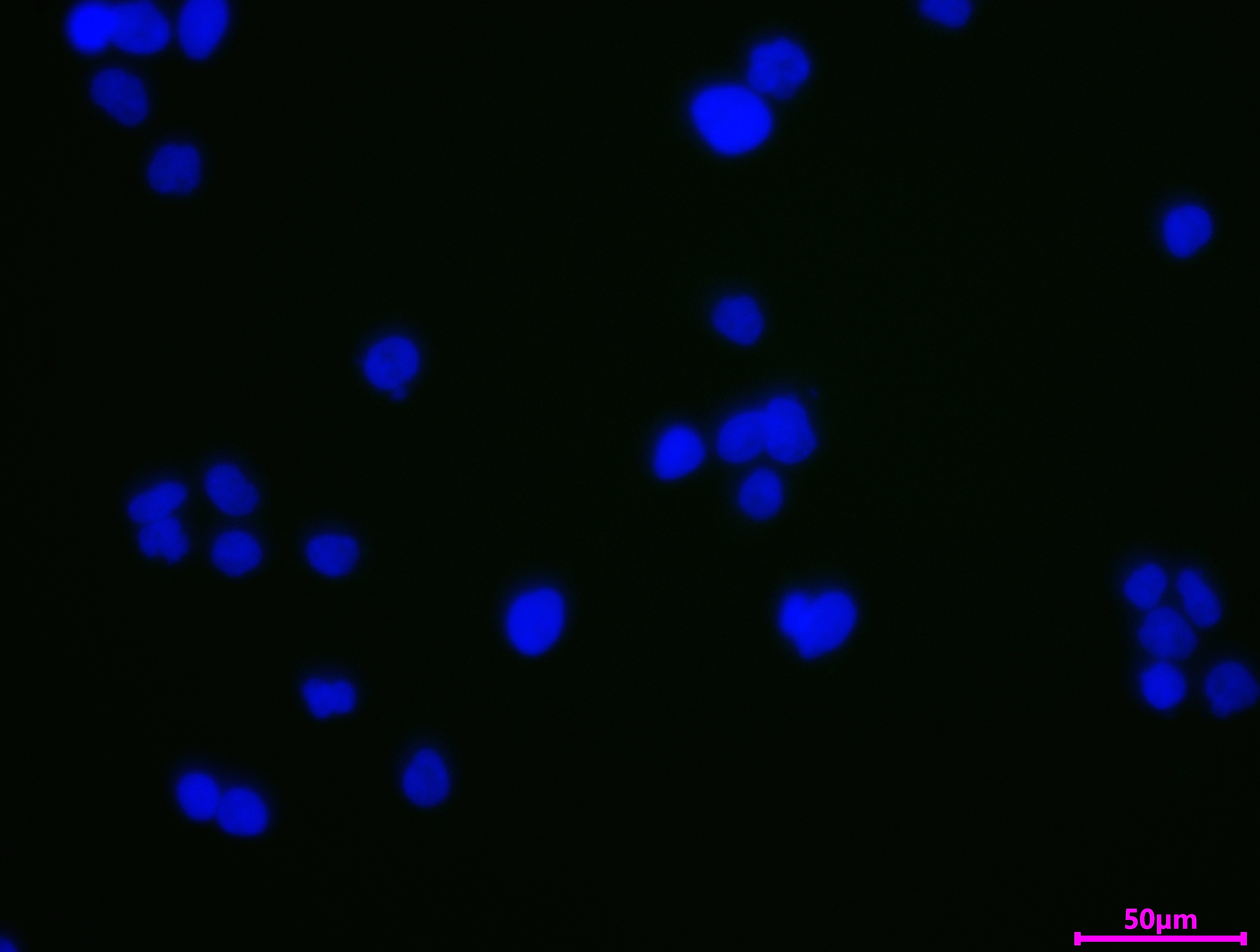 Immunofluorescence staining of A431 cell with 5% goat serum, counter-stained with DAPI. The cells were fixed in 4% formaldehyde and blocked in 10% normal Goat Serum. The cells were then incubated with the antibody overnight at 4C. The secondary antibody was Alexa Fluor 488-congugated AffiniPure Goat Anti-Rabbit IgG(H+L).