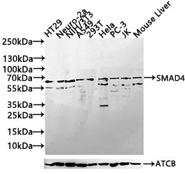 All lanes: SMAD4 antibody at 1:1000