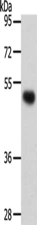 Gel: 10%SDS-PAGE, Lysate: 40 μg, Lane: Hela cells, Primary antibody: CSB-PA049349(SMAD5 Antibody) at dilution 1/250, Secondary antibody: Goat anti rabbit IgG at 1/8000 dilution, Exposure time: 20 seconds
